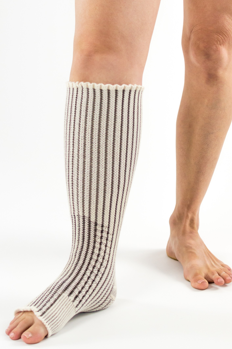 Comfiwave er produceret med patenteret højelastisk garn, hvilket gør den nemmere at tage af og på og stoffets åndbarhed betyder, at den er køligere at have på end traditionelle kompressionsprodukter